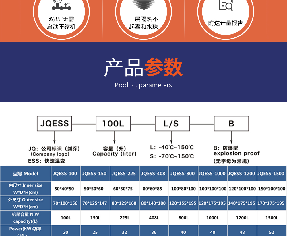 快速溫變試驗(yàn)箱型號命名說明 及 參數(shù)表