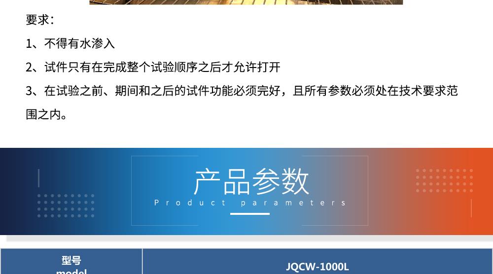 產(chǎn)品型號(hào):JQCW-1000L 品牌:劍 喬 用途:冰水沖擊試驗(yàn)(浪涌水的溫度沖擊試驗(yàn))是模擬部件在駛過(guò)積水時(shí)而產(chǎn)生的浪涌水的負(fù)荷情況,保證部件由于水而急劇冷卻情況下的功能穩(wěn)定性。如車(chē)輛在冬季有水路面駕駛時(shí)冰水濺落到熱的系統(tǒng)/組件上,失效模式為不同的溫度膨脹系數(shù)導(dǎo)致的材料機(jī)械破裂或密封失效咨詢(xún)熱線(xiàn):13829135130