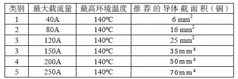 2.2.1 最大電流承載能力:該測試是為了確定線束在開始發(fā)生過度熱降解和/或具有超額電阻之前能夠承受的最大試驗(yàn)電流。實(shí)驗(yàn)的合格標(biāo)志是在規(guī)定的載流范圍內(nèi),整個(gè)連接系統(tǒng)內(nèi)任何一點(diǎn)的溫升不可超過55度或不可超出產(chǎn)品的使用極限。目前不同規(guī)格線束將依據(jù)線纜截面積進(jìn)行載流劃分,具體可參看下表2: